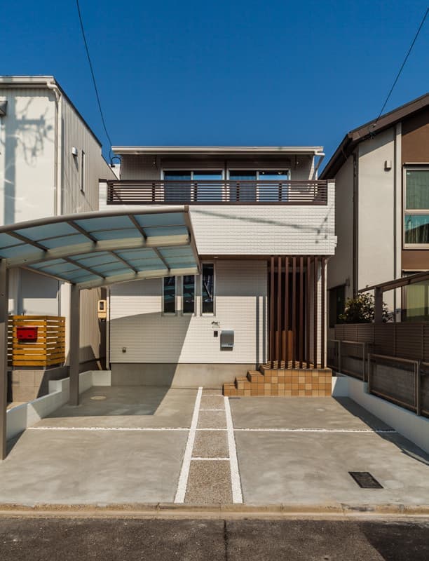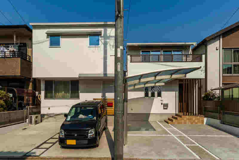 隣もラウムハウスで建てた「昭明町K-HAUS」で、二つ並んだシンプルな外観が街並みに違和感なく存在しています。