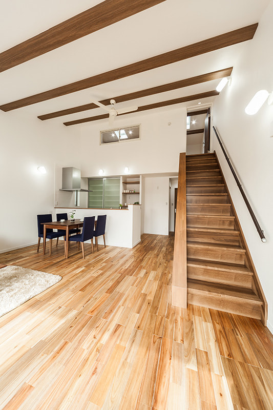 ロフトにあがる空間を邪魔しないリビング階段です。