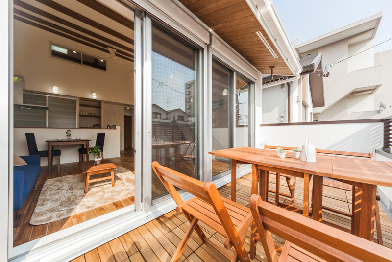 リビングと繋がるのでウッドデッキバルコニーも楽しい空間に。