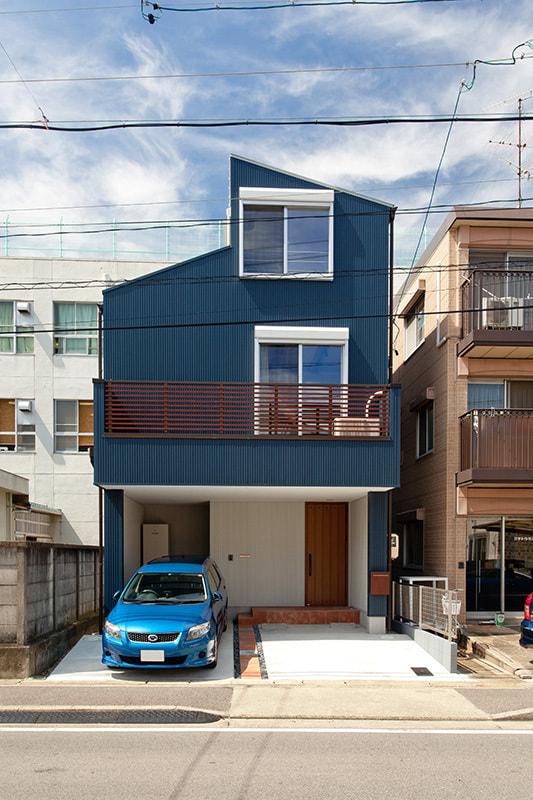 間口が狭くて奥行きの長い狭小敷地に建つSE構法の3階建て住宅です。