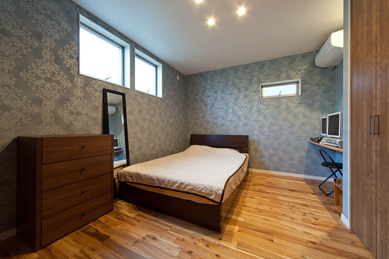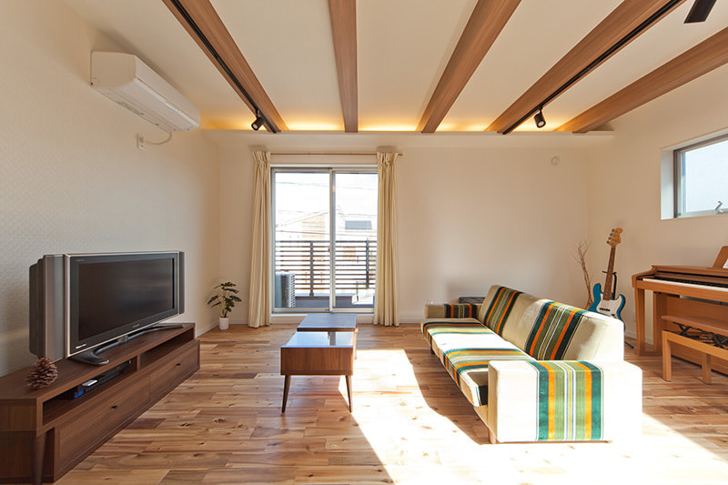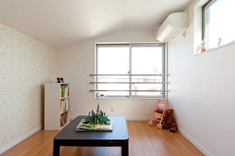 敷地の裏は中学校ということもあり、騒音やプライバシーを守りつつ、光や風を取り入れるために、2Fのリビングとダイニングキッチンの間に中庭を取り入れました。