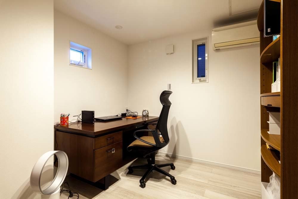 1階にはご主人の書斎。落ち着いて仕事ができるスペースとなっています。