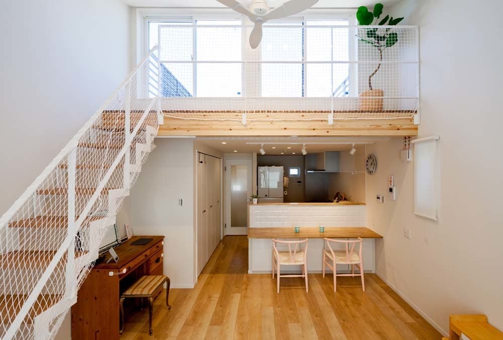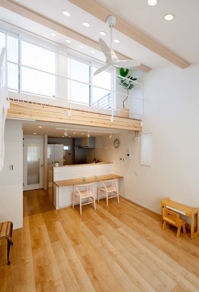 敷地面積が狭いうえに周辺に建物が迫る厳しい敷地条件の中で、お施主様が望んだ明るく開放的で暮らしやすい空間を実現しています。