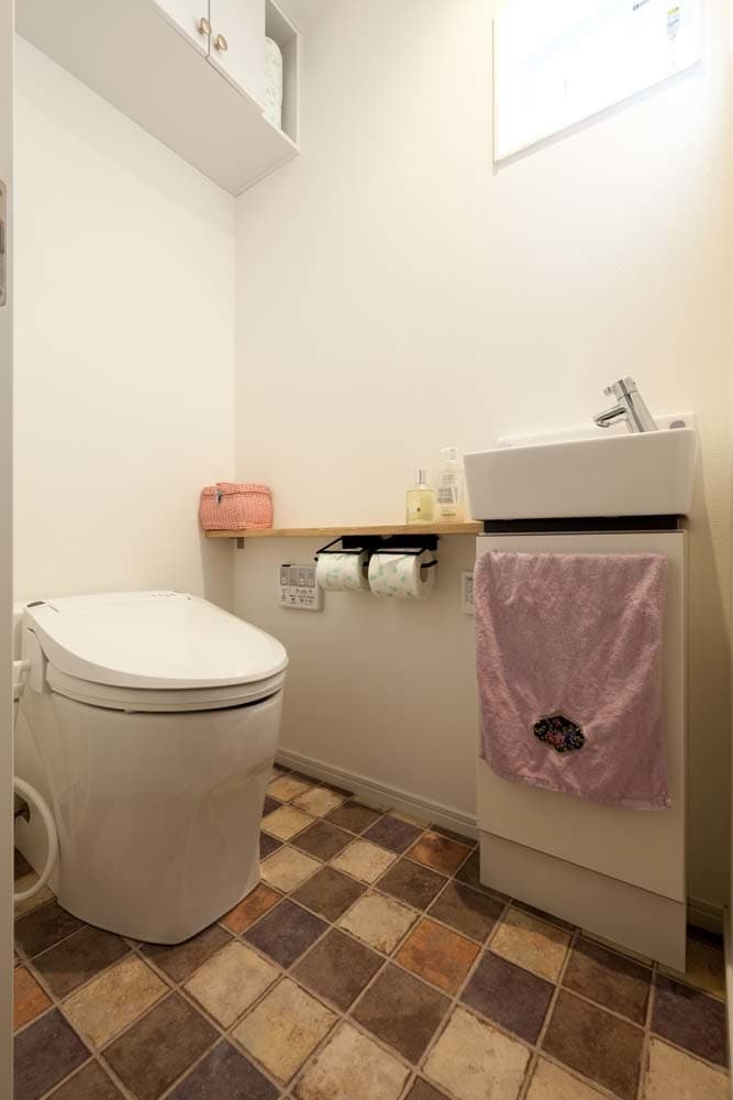 トイレの床もおしゃれな柄のフロアタイルに仕上げました。