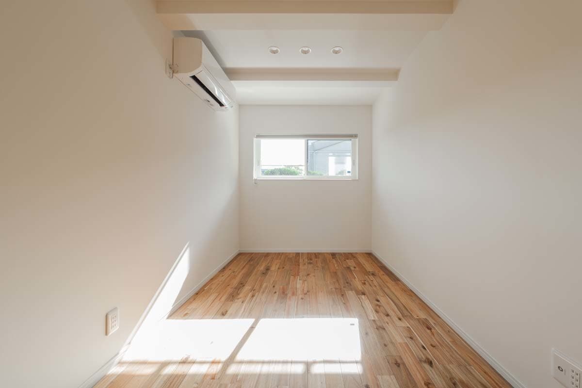 1階の寝室。落ち着いたテイストの部屋です。