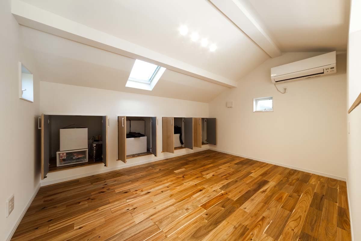 ロフトには収納スペースも確保しています。