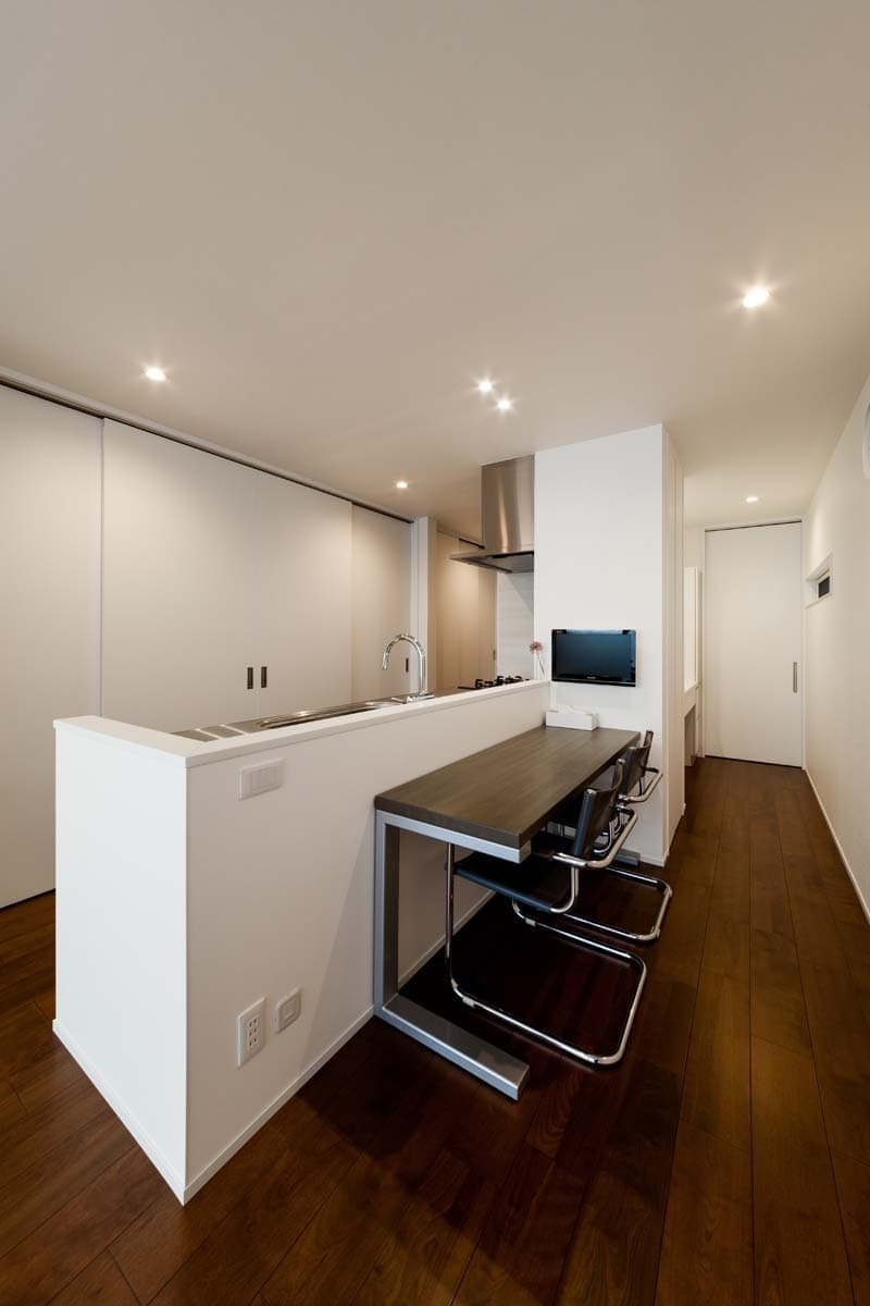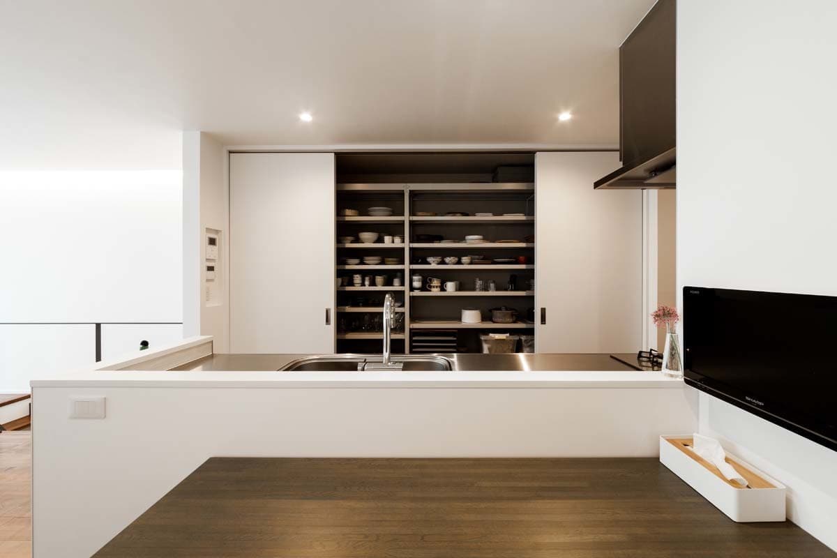 キッチンのバックセットはラウムハウスオリジナルの造作で製作。
