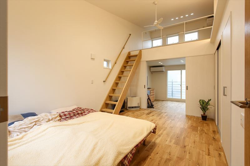 寝室の上のロフト部分。収納力もあり何かと便利なスペースです。