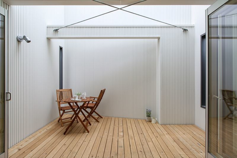 2階の中庭バルコニーはバスコートにもなり、ここもリラックスできるスペースです。