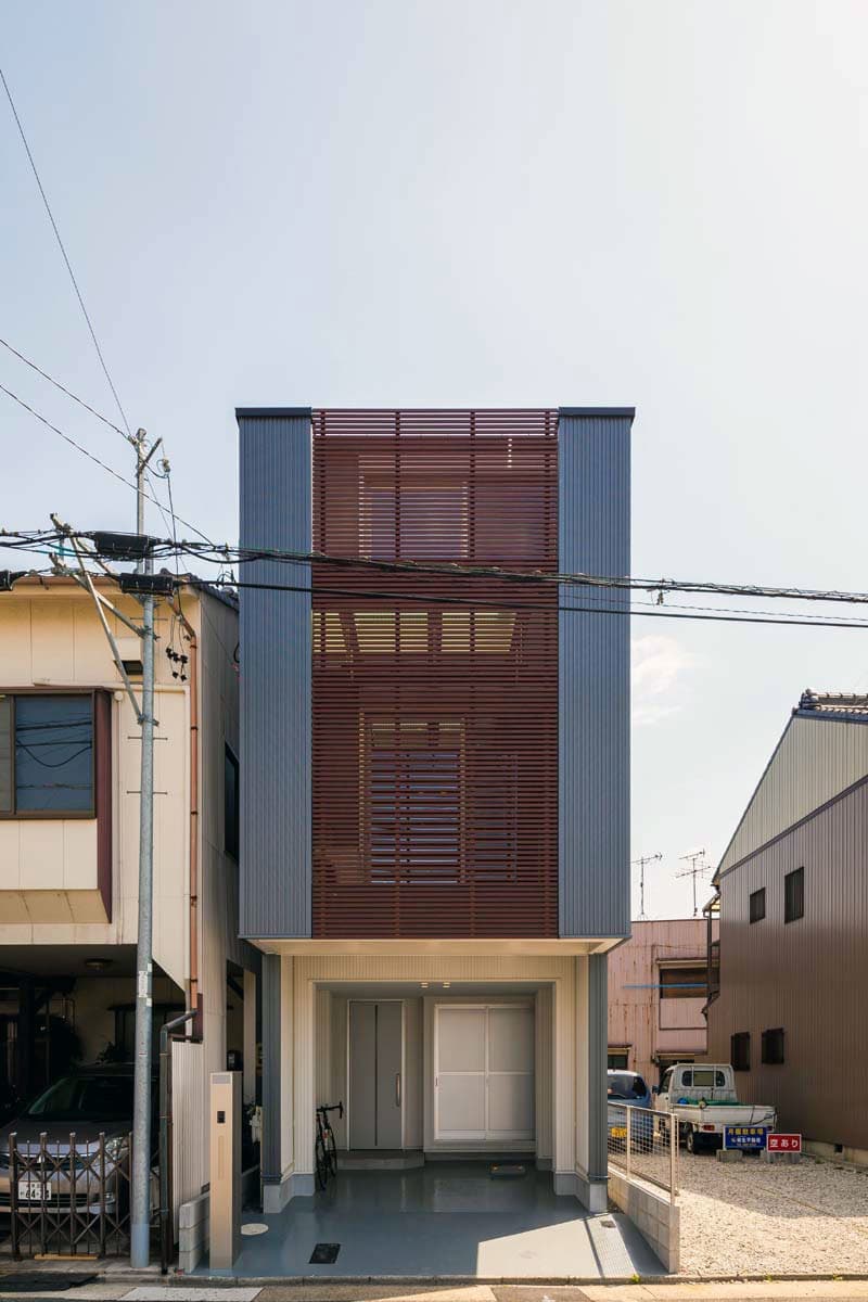 間口が狭く奥行きが長い狭小地に建て替えた、3階建ての狭小住宅です。