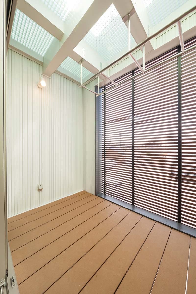 ダイニングの奥には、洗濯機や家事をできるように作り付けのカウンターもある奥様の家事室となっていて、洗濯物を干せるバルコニーともつながった家事動線も考慮した設計です。