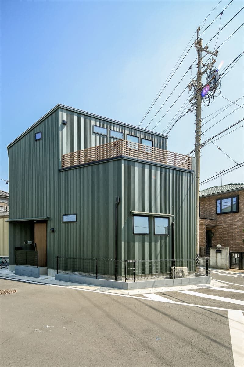 鋭角に交差した道路の角地にある「台形」の形で、面積も65㎡と狭い「変形地&狭小地」ですが、逆に、その特徴を最大限に活かして、暮らしやすい家になるように設計をした建物です。