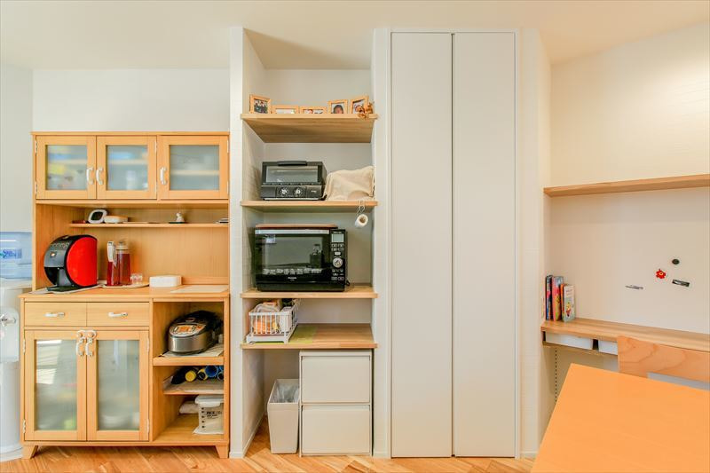 キッチンの収納スペースもすっきりと納まります。
