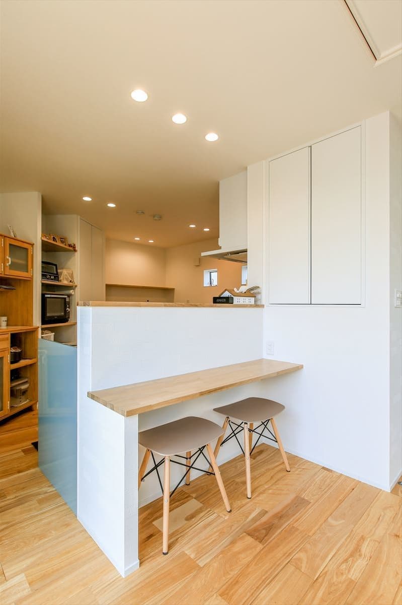 キッチンの前にはカウンターテーブル。簡単な食事はここでも可能です。