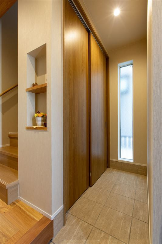 収納力たっぷりの玄関のウォークインクローク