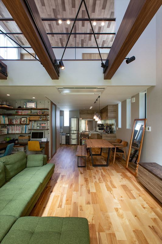 内装全体のデザインは、店舗建築関係のお仕事をされているお施主様のご意向でまとめています。木と鉄のテイストを感じる仕様を中心にまとめられていて、おしゃれなカフェのようなアンティ―クな雰囲気の空間です。