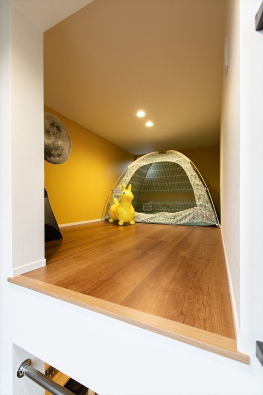 遊び場とデスクコーナーを兼ねる楽しいスペース