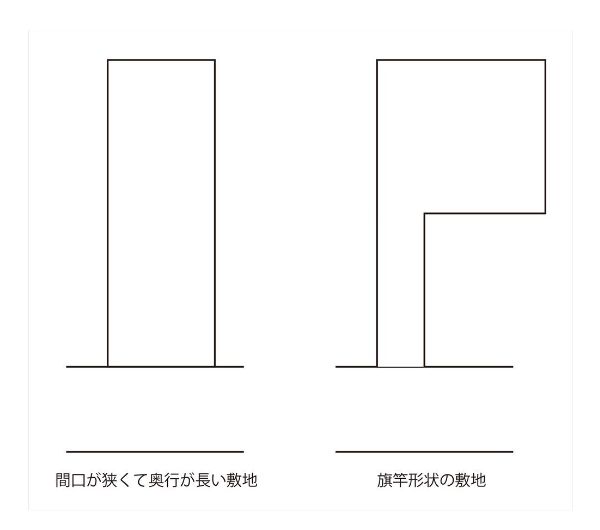 また、「狭小住宅」のイメージには、敷地面積によるものだけでなく、敷地形状によって認識されることもあります。