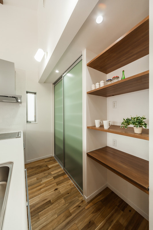 天井まである収納力の高いオリジナル食器棚