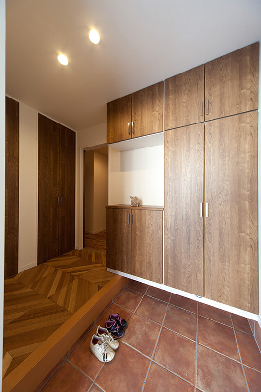 正面にはガレージを配置するためにSE構法のラーメン構造を生かした耐力フレームを採用して、耐力壁がなくても耐震等級3の優れた耐震性能の建物でもあります。