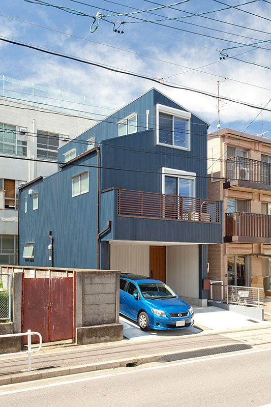 間口が狭くて奥行きの長い狭小敷地に建つSE構法の3階建て住宅です。
