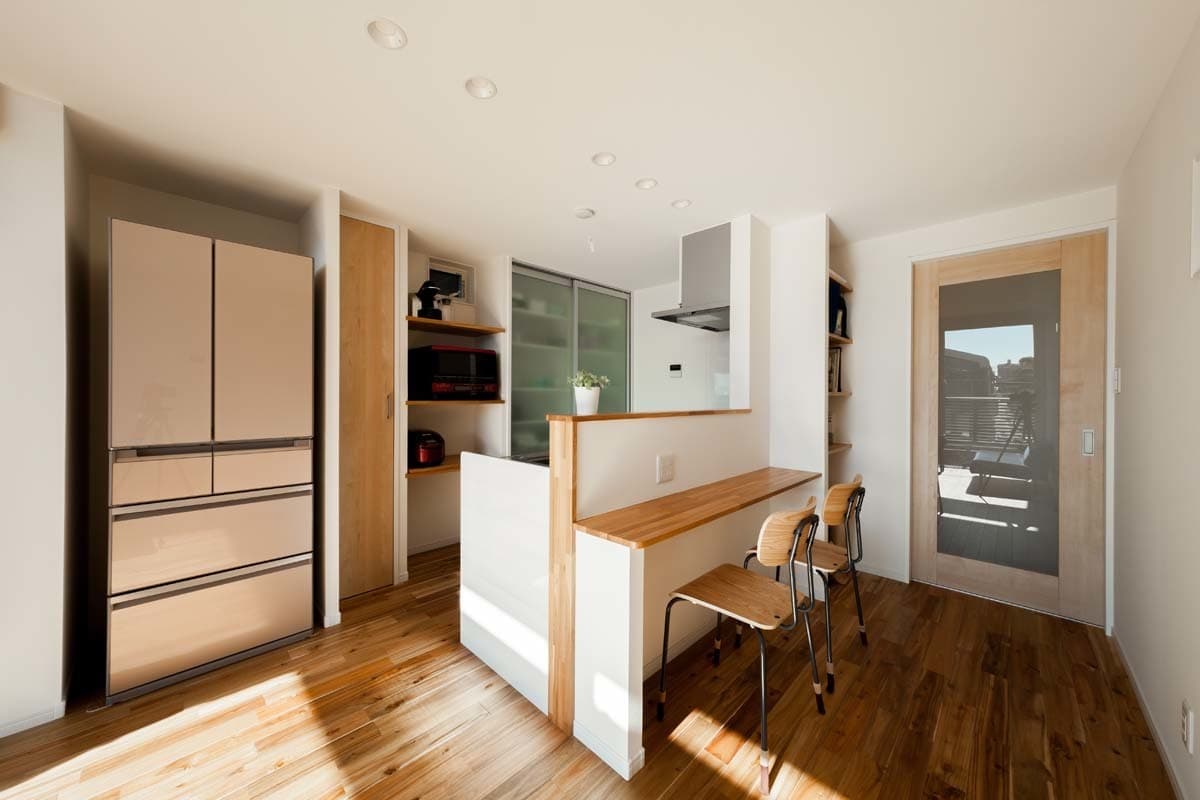 対面キッチンの向かいには気軽に食事もできるカウンターを設置しました。