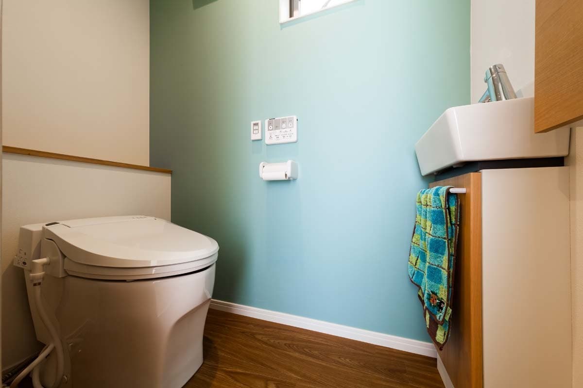 トイレの壁はさわやかなグリーンの色にしました。