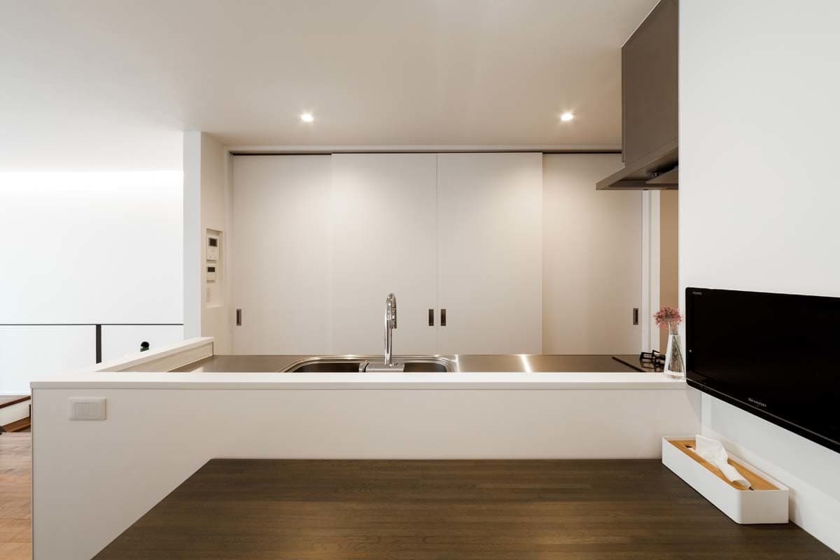 プランニングについては、狭小地でも開放的な空間をコンセプトに、ラウムハウスらしい提案の設計となっています。そして、デザイン関係のお仕事をされているお施主様の意向を反映して、内装のデザインはシンプルながら線のバランスや高さにもこだわりました。その効果もあり、全体的にすっきりと洗練されたテイストの家となっています。