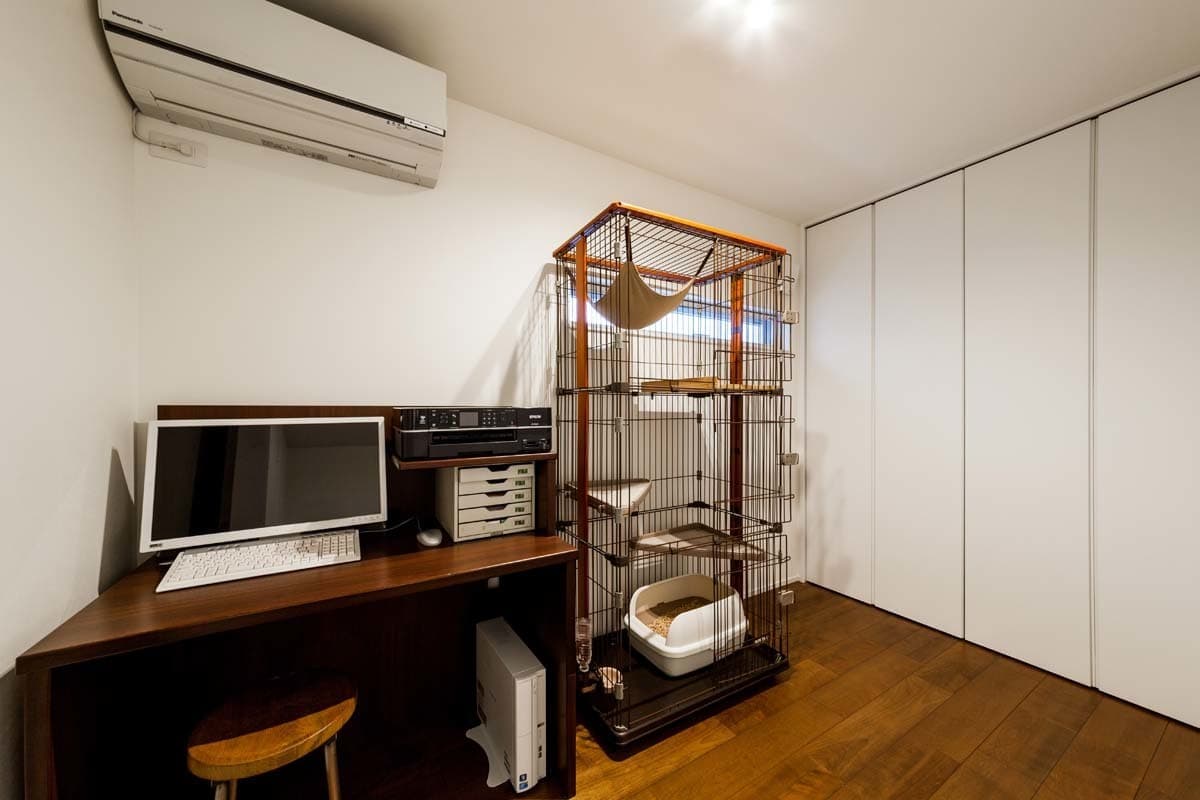 1階にはご主人の書斎スペースと猫の寝室を兼用。