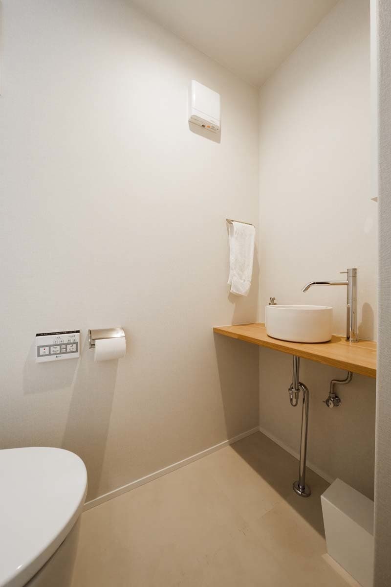 ダイニングの奥には、洗濯機や家事をできるように作り付けのカウンターもある奥様の家事室となっていて、洗濯物を干せるバルコニーともつながった家事動線も考慮した設計です。