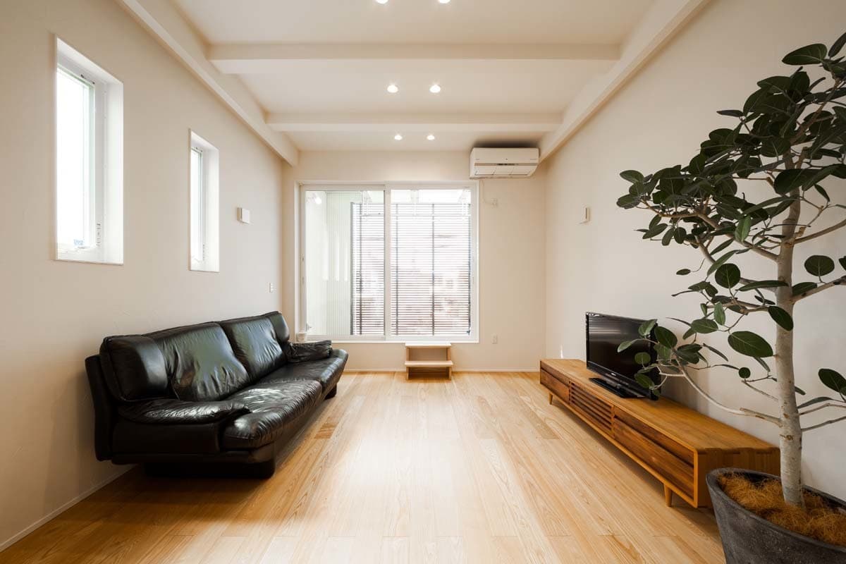 リビングにはバルコニーのある窓から明るい光が差し込みます。