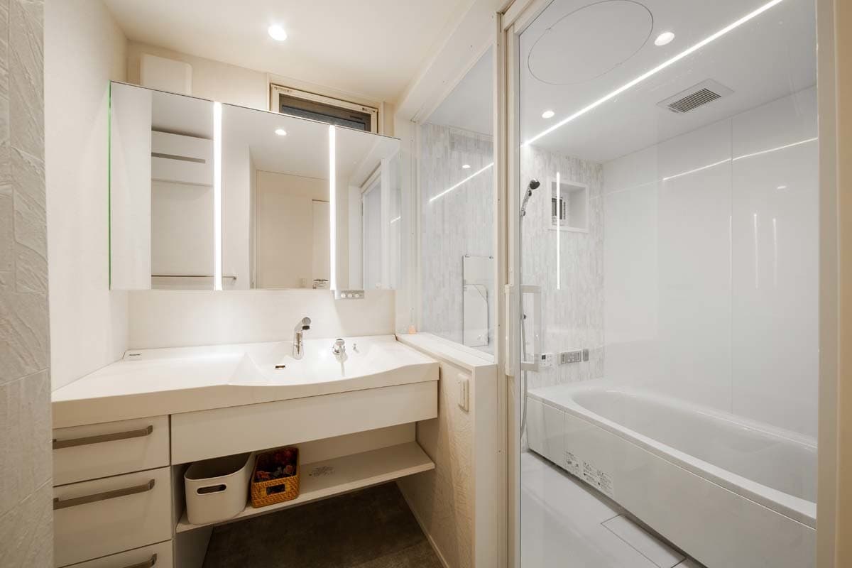 使いやすくガラスで開放感のある洗面台とお風呂。