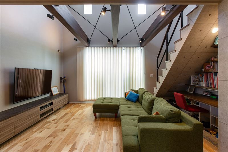 特に、構造のために吹き抜け部分に設置した鉄筋ブレスが、デザインとして違和感を感じさせないのが印象的です。